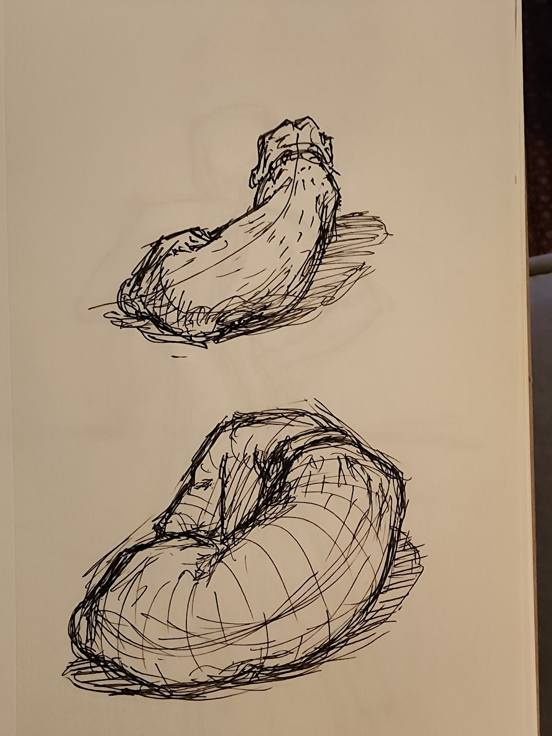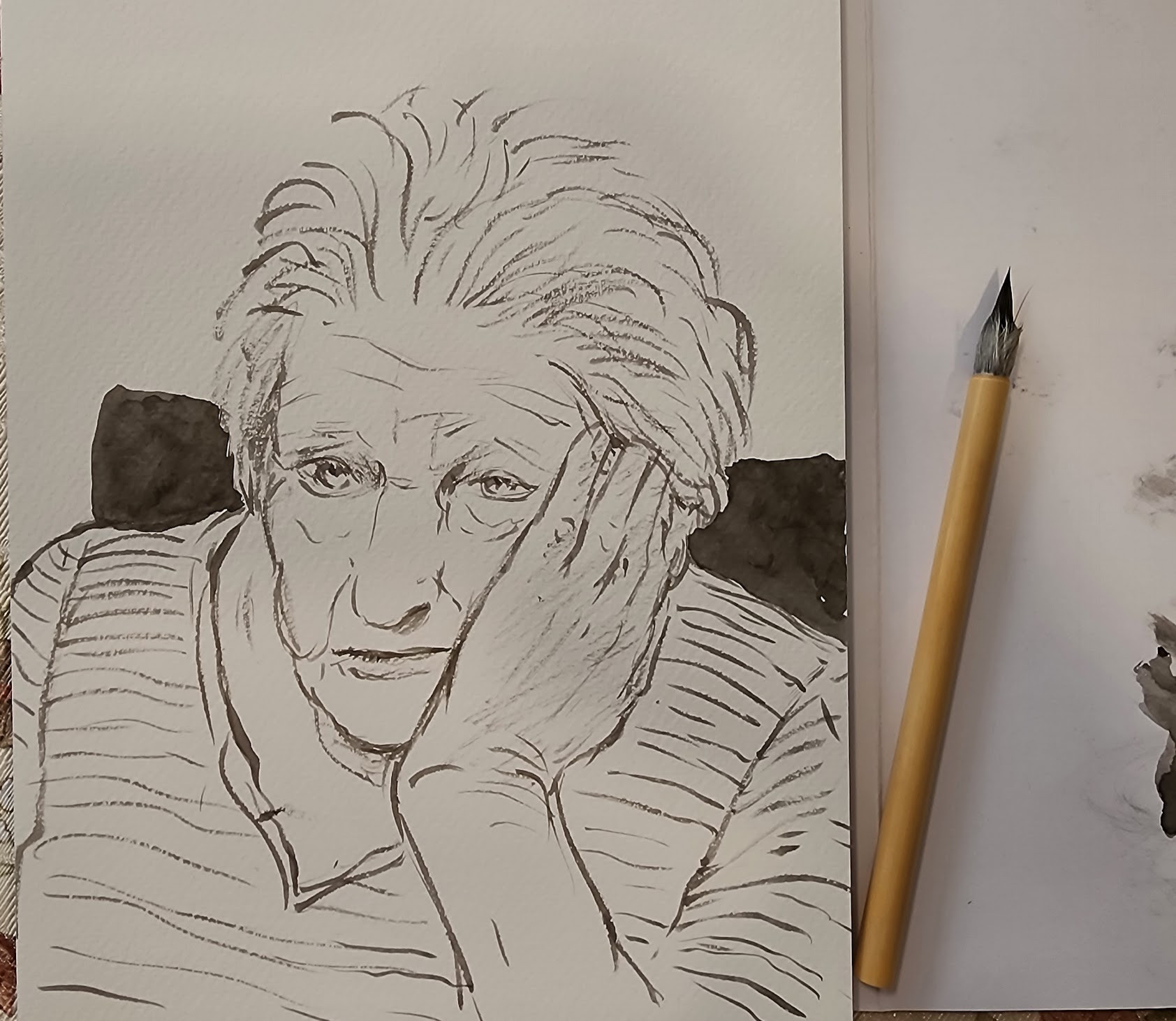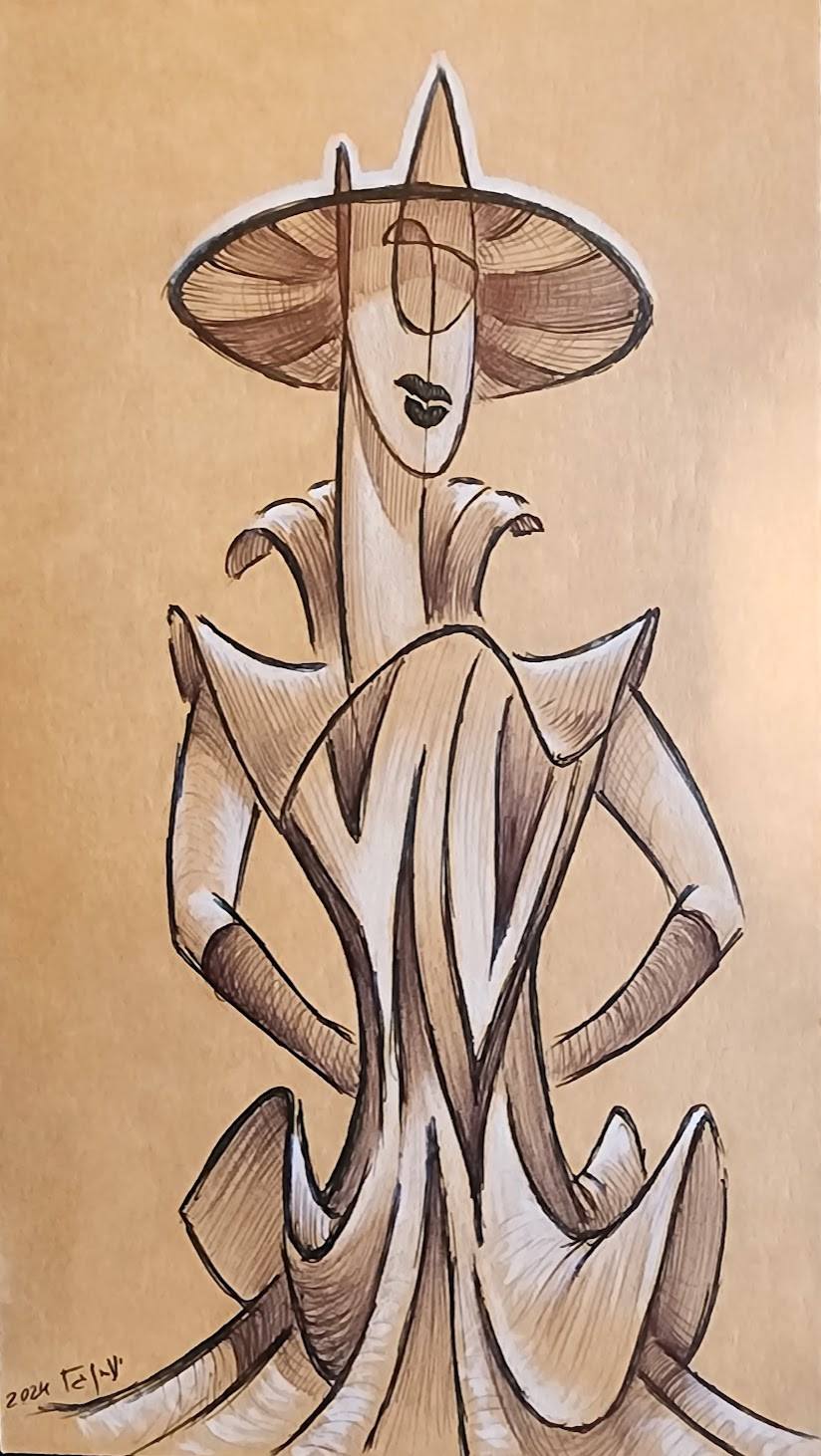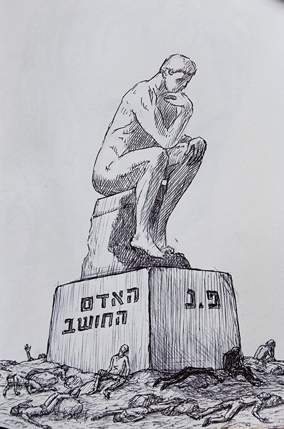 עט ועפרון לבו על קרטון פיצה ,ממוסגר