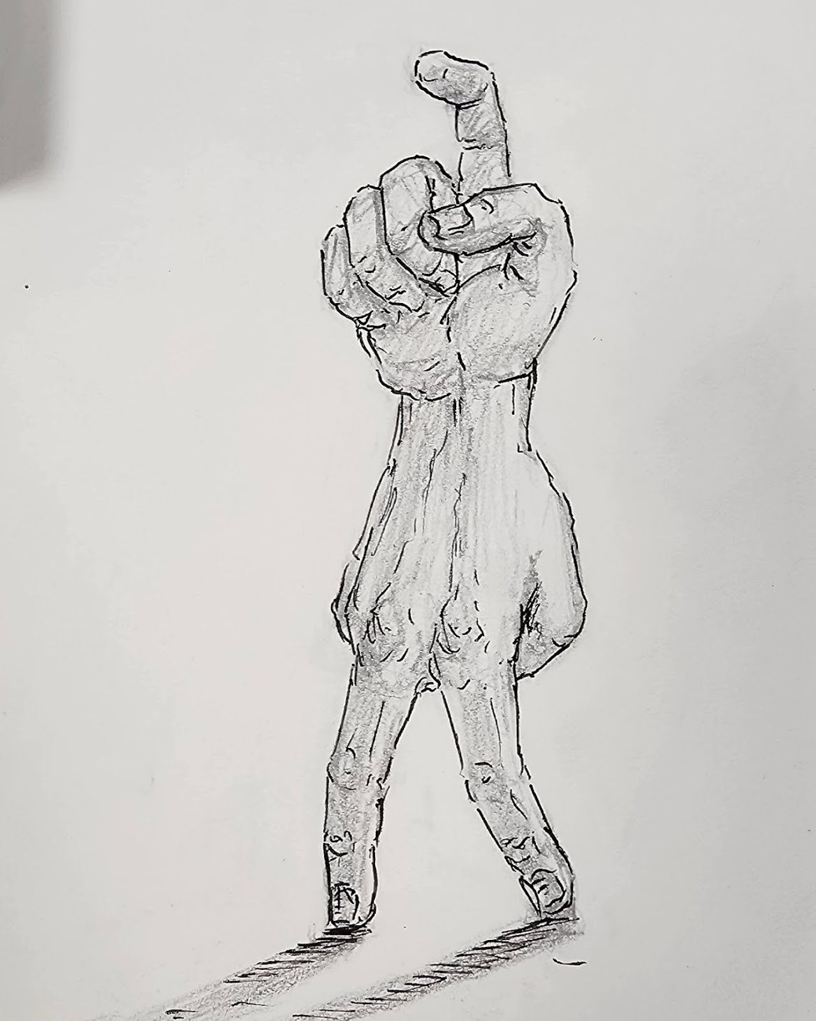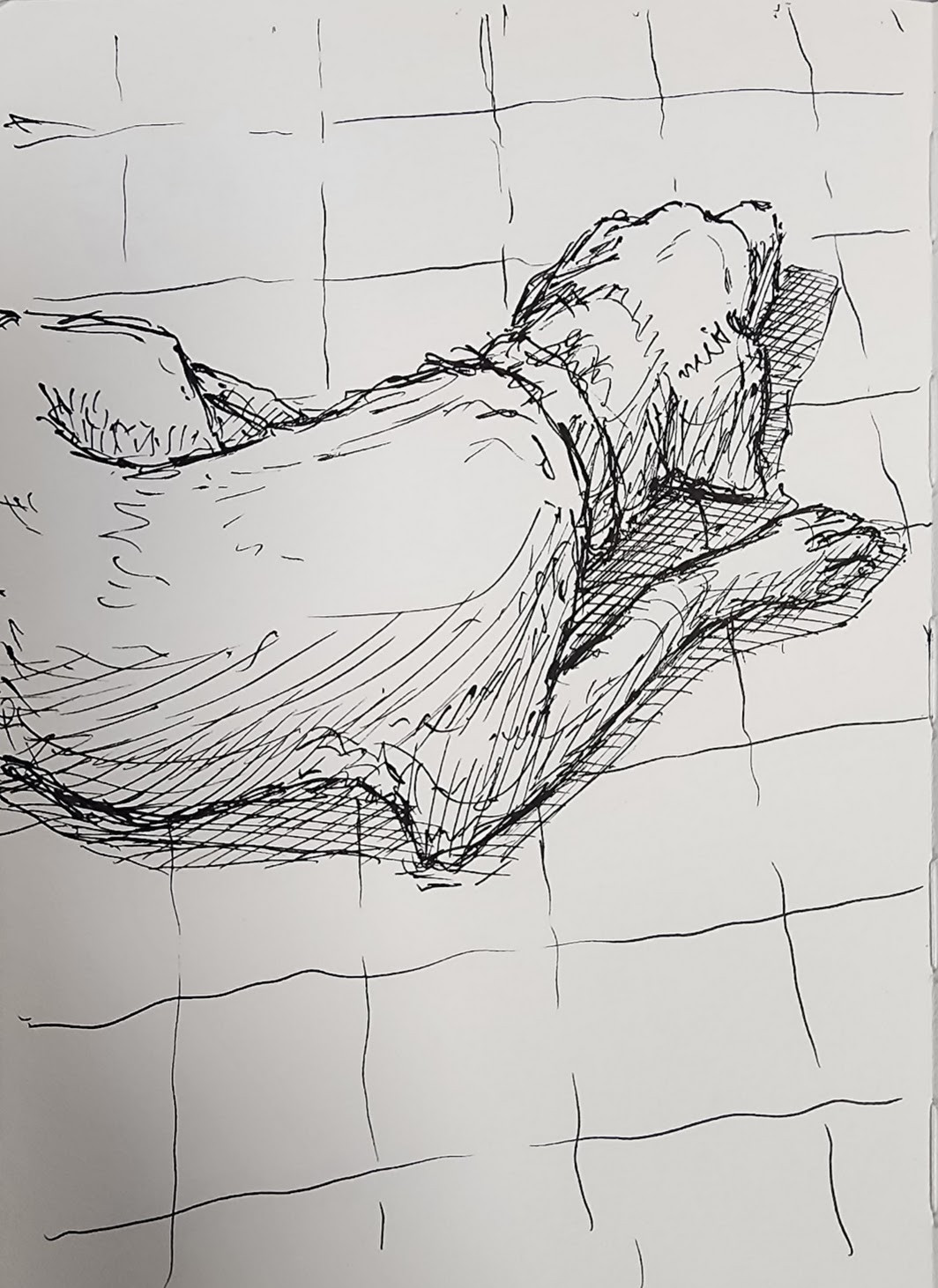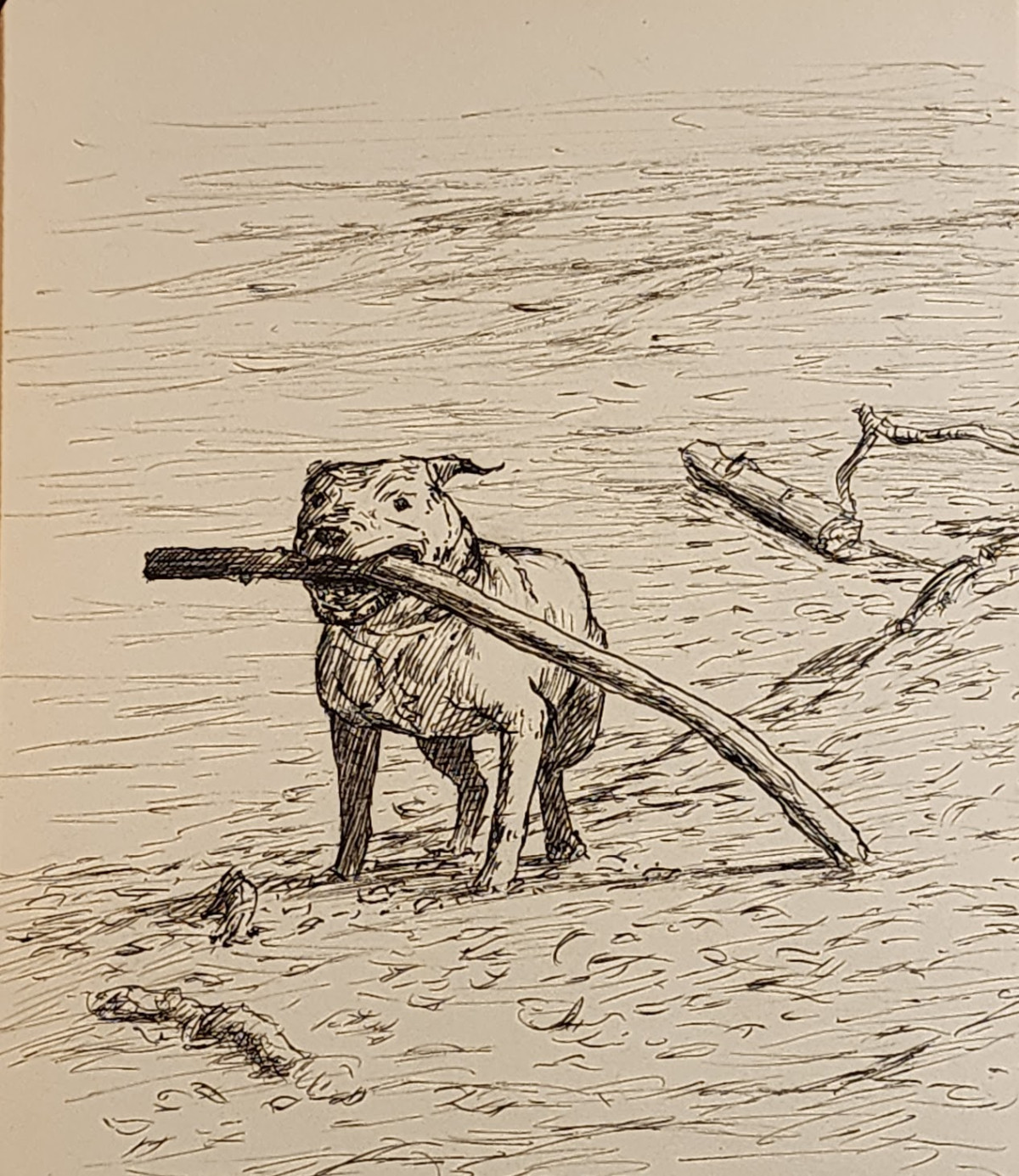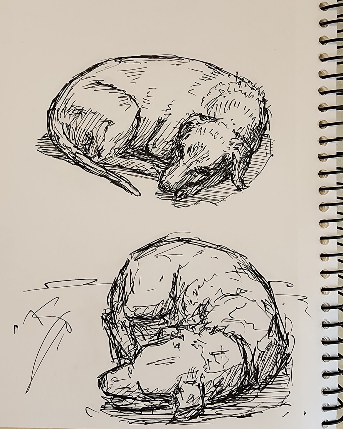 עט ועפרון לבו על קרטון פיצה ,ממוסגר
